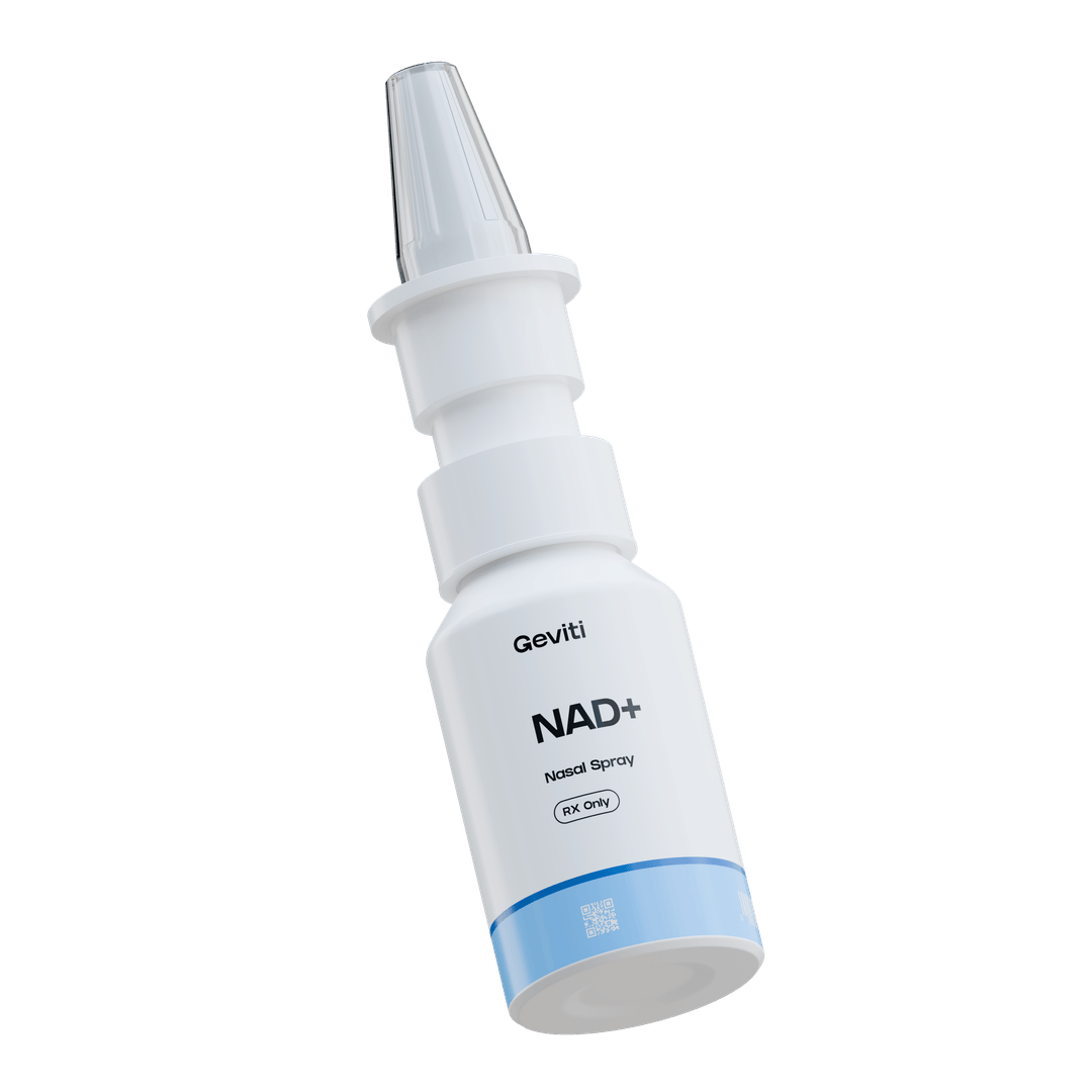 NAD+ nasal spray boosts cellular energy production and supports mitochondrial function in a convenient, non-invasive form. It enhances cognitive performance, energy levels, and overall vitality by promoting the body's natural repair and regeneration processes. This product is not available in the following states or territories: IN, MI, MN, MO.